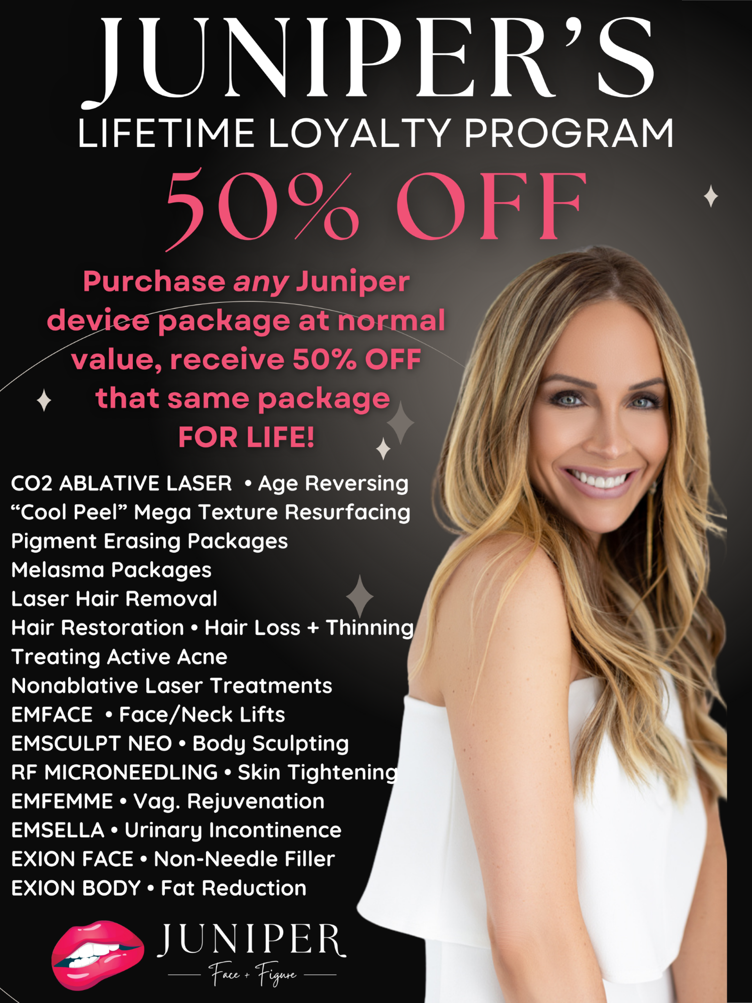 Juniper's Lifetime Loyalty Program Gives Clients 50% OFF Packages FOR LIFE!
